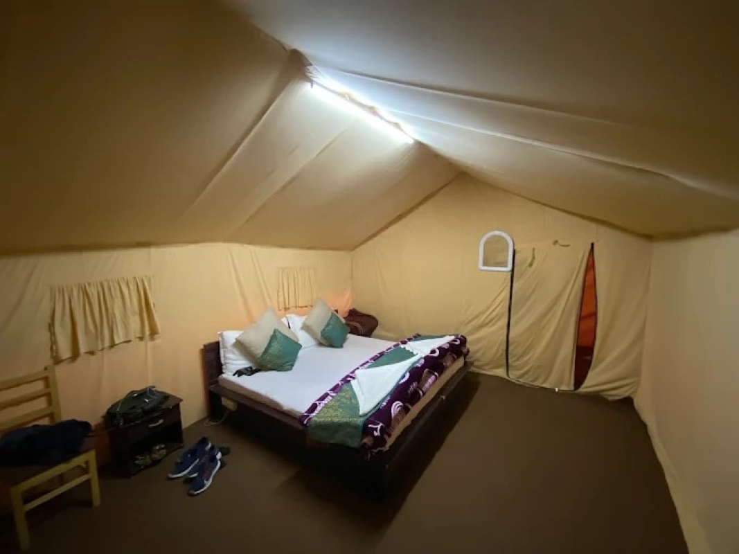 The tents used at the Hunder, Nubra Valley Leh Ladakh site are well-equipped with modern facilities and a private porch (verandah) to help you relax as you drink in the dramatic landscape. Each tent has a spacious en suite bathroom with running hot and cold water. The camp is run by professionally trained staff who are warm and hospitable to provide you a sense of Camp in Nubra. To reach the Nubra valley one has to cross the highest motorable road in the world Khardungla at 18300 feet. The famous Silver sand dunes and double humped camel rides is situated 5 mins walking distance from DE Nubra Camp.