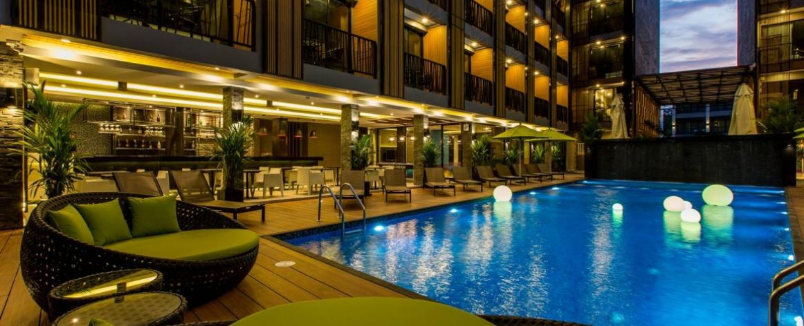 The hotel offers a range of facilities to enhance your stay, including a large outdoor swimming pool, a dedicated kids’ pool, and a fun-filled kids’ club—making it an excellent choice for families. Fitness enthusiasts can take advantage of two fully equipped gyms, while leisure travelers can relax at the poolside bar or enjoy delicious meals at the on-site restaurant serving Thai and international cuisine.