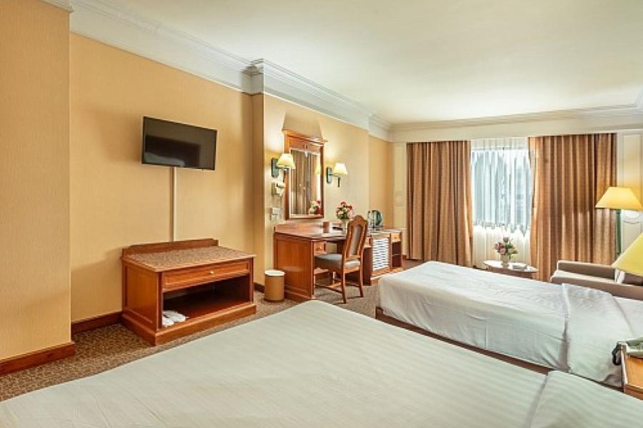 Royal Benja Hotel stands out for its exceptionally spacious rooms, which are significantly larger than most city hotels in Bangkok. Designed with comfort in mind, each room features modern amenities such as air conditioning, flat-screen television, minibar, and a well-appointed bathroom with separate shower and bathtub. Whether you are traveling with family, friends, or on a business trip, the hotel offers a variety of room categories including Deluxe Rooms, Family Rooms, and Suites to suit every need.