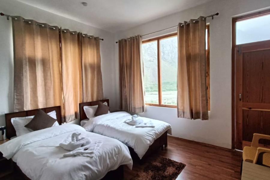 /home/miyatra/public_html/site/templates/t-hotel-detail.php on line 314The Deluxe Rooms at Rustic Sojourn Jispa offer a perfect blend of rustic charm and modern comfort, set against the breathtaking backdrop of the Lahaul Valley. Thoughtfully designed with wooden interiors and cozy furnishings, these rooms reflect the natural beauty and warmth of the Himalayas. Modern amenities such as an attached bathroom with hot water, comfortable seating, and essential conveniences ensure a pleasant stay while preserving the authentic mountain feel. Whether you are unwinding after a long journey or simply soaking in the serenity of Jispa, the Deluxe Room at Rustic Sojourn provides a peaceful and memorable experience.