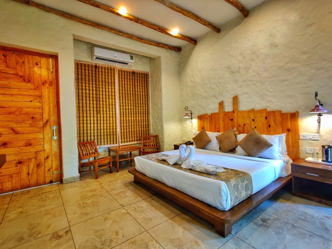 The River Edge Corbett offers 16 well appointed rooms offering all modern amenities and services bringing you a relaxing stay experience. Our rooms exude rustic vibes, while for those preferring to enjoy a close intimate view of the river, our four River View Rooms dotted along the Kosi riverbank are offering awe-inspiring views right from your bed.
